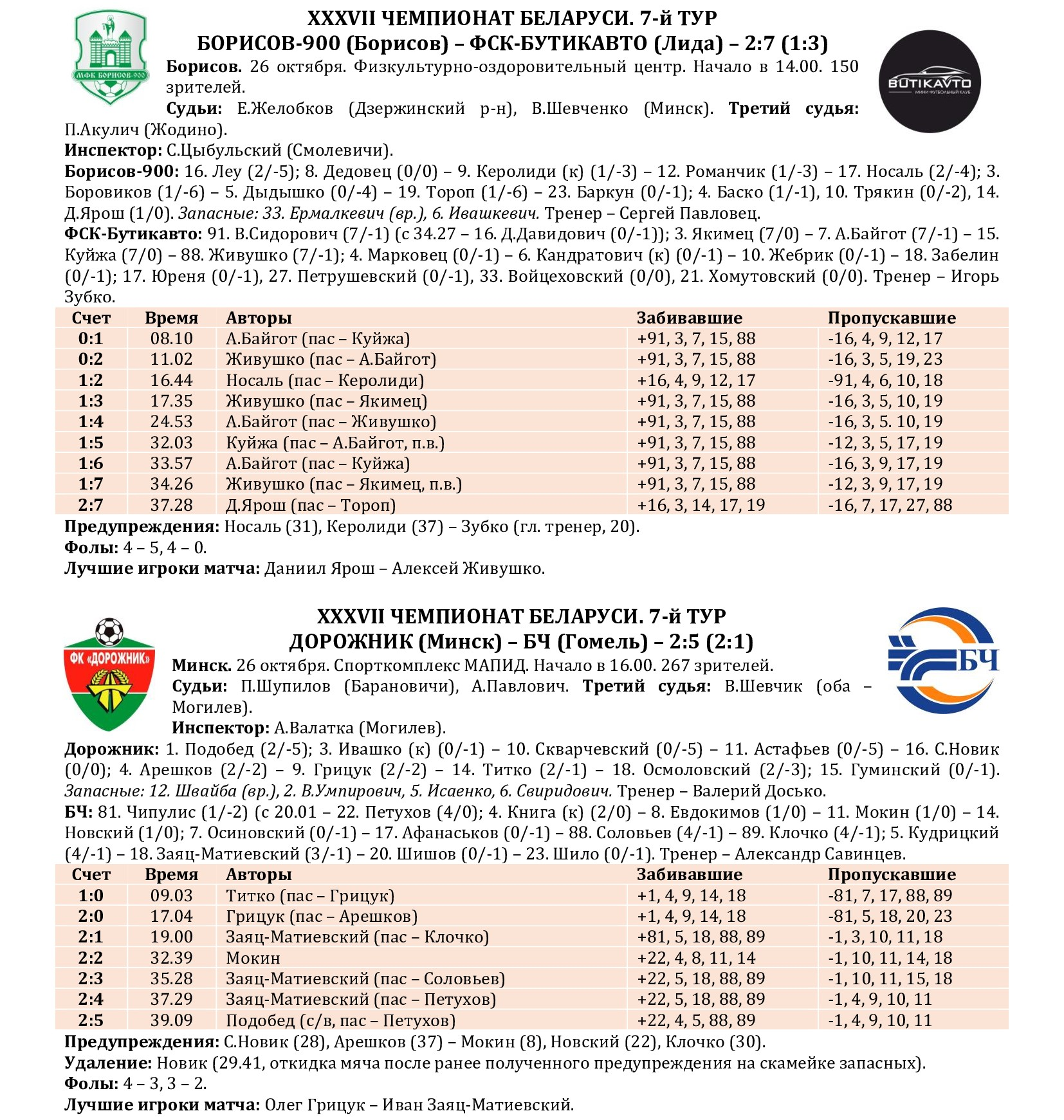7-й тур XXXVII чемпионата Беларуси. Итоги