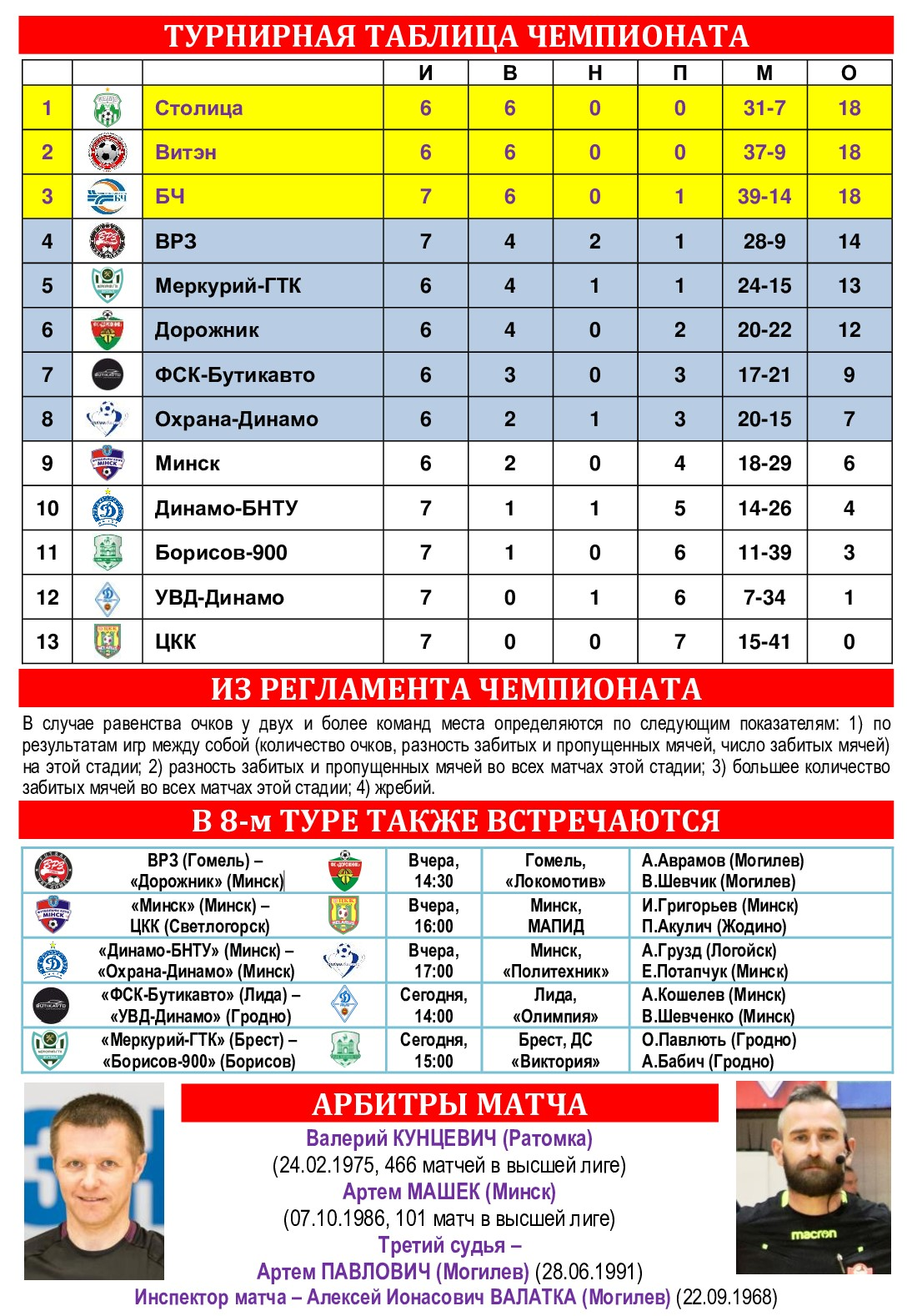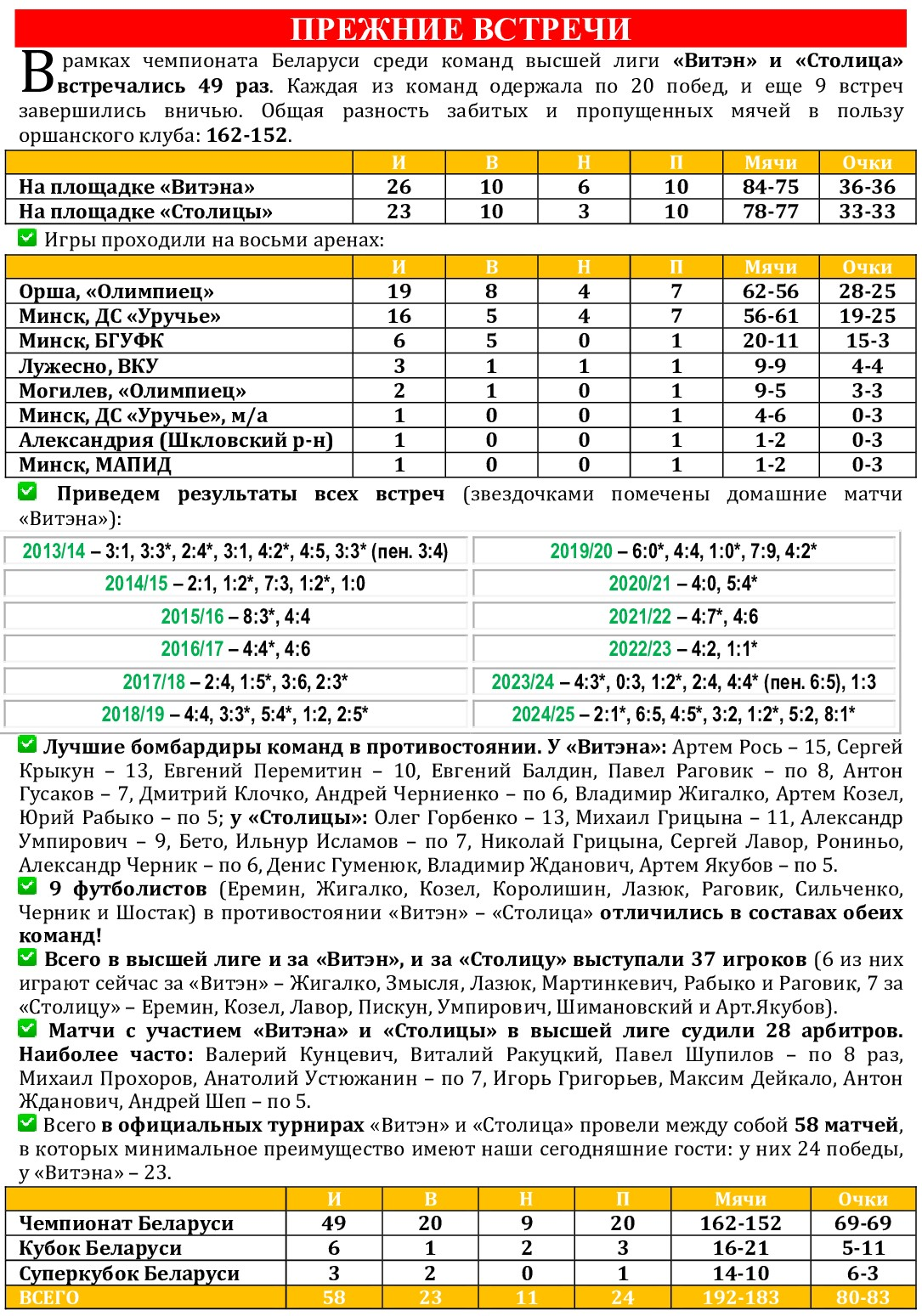 Турнирный пелетон XXXVII чемпионата возглавляют сразу три клуба – «Столица», «Витэн» и БЧ, имеющие в активе по 18 очков. Волей календаря грядущий тур гомельские «железнодорожники» пропускают, а «энергетики» и «столичники» встречаются между собой в Орше. Именно «Витэн» сумел в июне нынешнего года отобрать чемпионский титул у «Столицы», просто разгромив гостей в решающем поединке финальной серии – 8:1. Спустя четыре месяца дружина Александра Чибисова отправляется на берега Днепра с явным желанием взять реванш. Отметим, что грядущий матч станет 50-м в истории противостояния клубов в высшей лиге. Пока паритет: у каждого из соперников по 20 викторий. Встречу двух сильнейших команд страны покажет в прямом эфире телеканал «Беларусь 5», но самые преданные «столичные» болельщики уже давно запланировали воскресный выезд. Спорткомплекс «Олимпиец» (ул. Тараса Шевченко, 21), начало матча в 12.30. Болеем за «Столицу»! Важны – кожны!