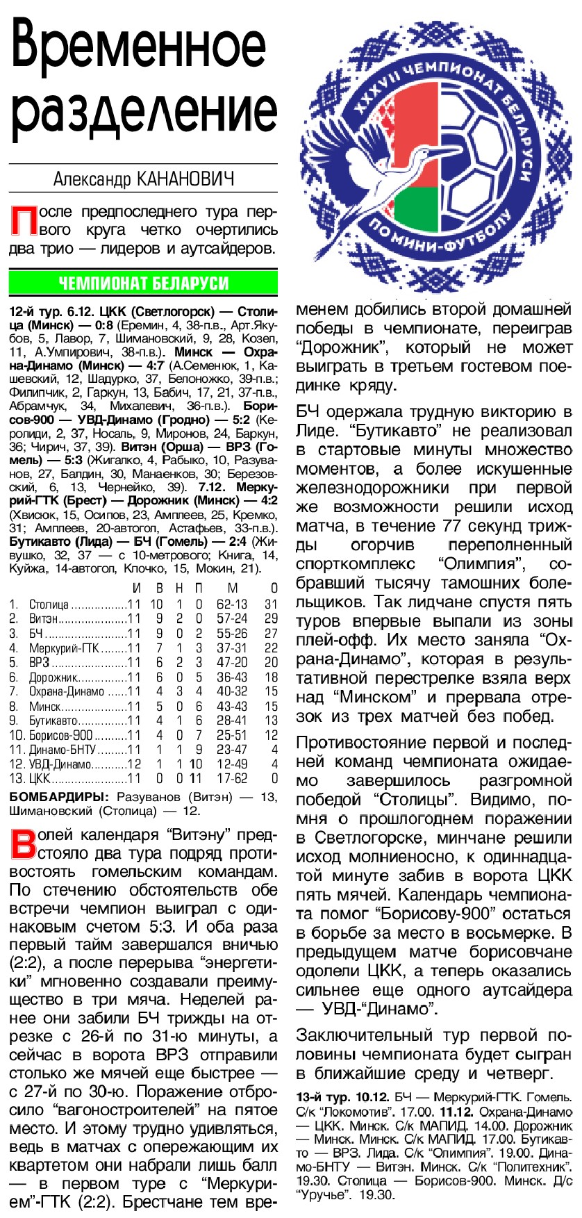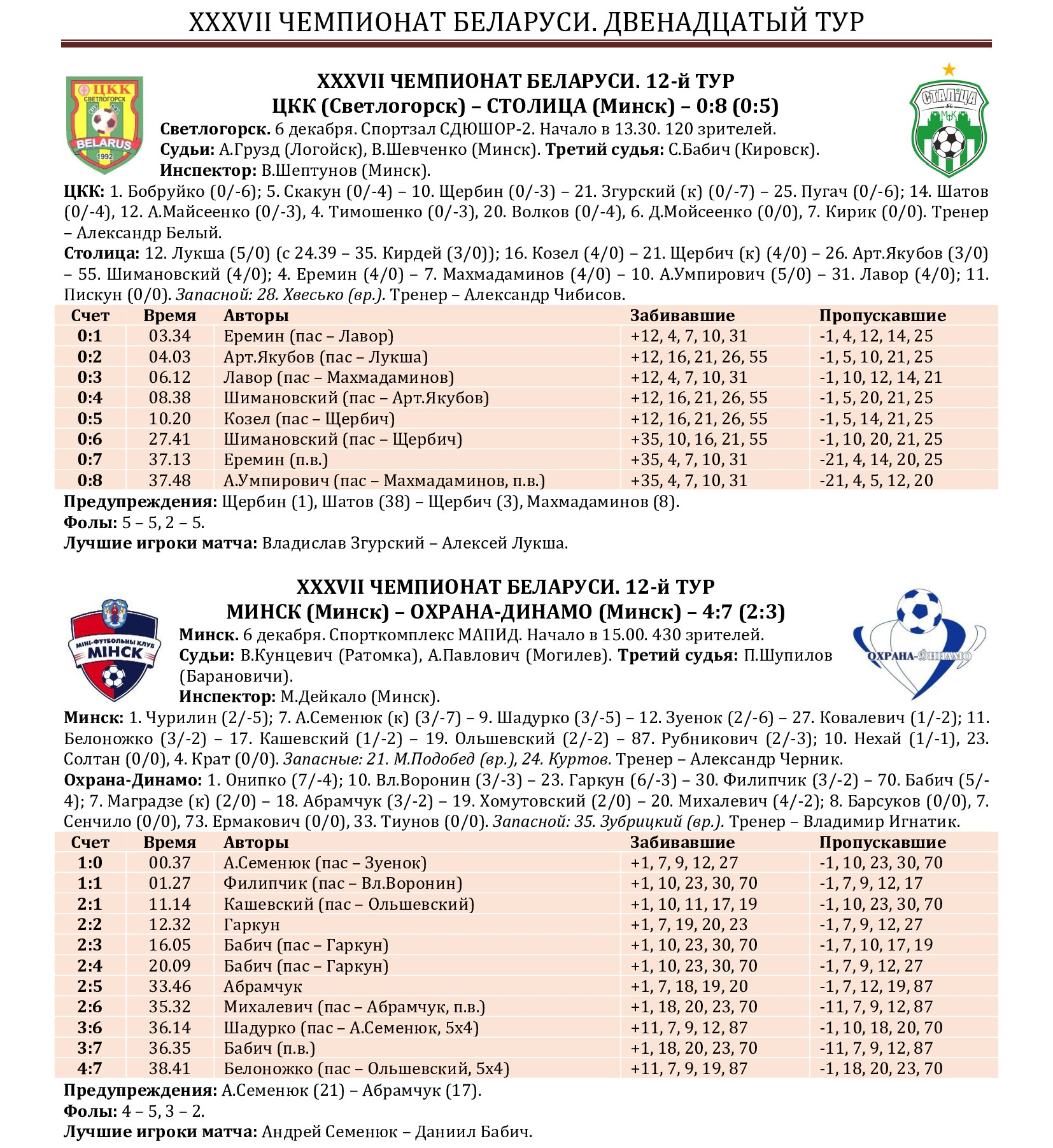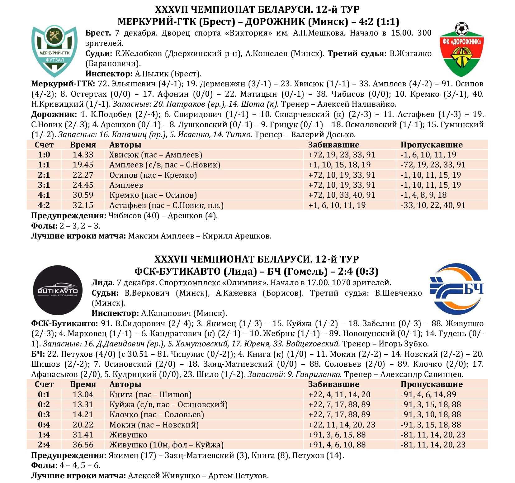 12-й тур XXXVII чемпионата Беларуси. Итоги