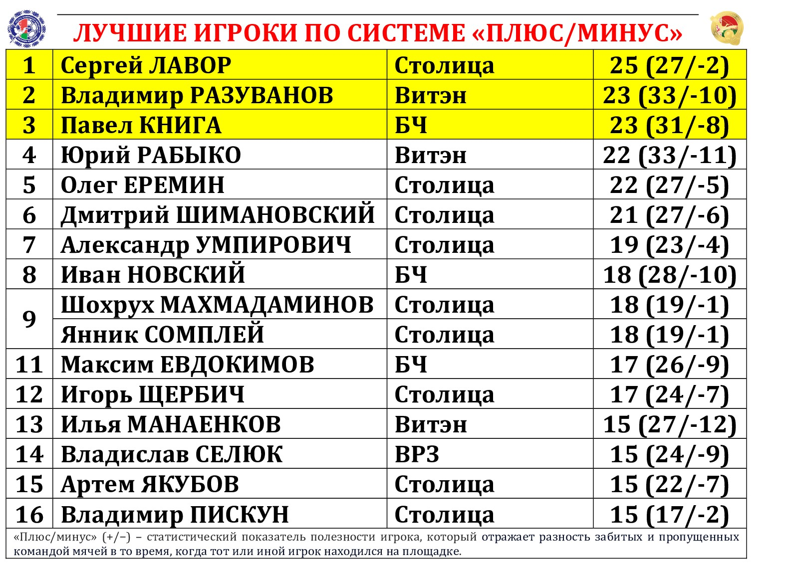 По традиции на сайте МФК «Столица» мы подводим итоги прошедшего тура с полной статистикой всех матчей, где указаны не только ассистенты при голевых «выстрелах», но и показатели по системе «плюс/минус» (статистический показатель полезности игрока, который отражает разность забитых и пропущенных командой мячей в то время, когда тот или иной игрок находился на площадке). Турнирная таблица, списки лучших бомбардиров, снайперов и самых полезных, символическая сборная, лучший игрок тура, ссылки на видеотрансляции и видеообзоры, 10-ка самых красивых голов, выпуски телепрограмм «Ясно о мини-футболе» и «Пятый полевой», репортаж об итогах из газеты «Прессбол» – вся информация о минувшем туре под одним заголовком!