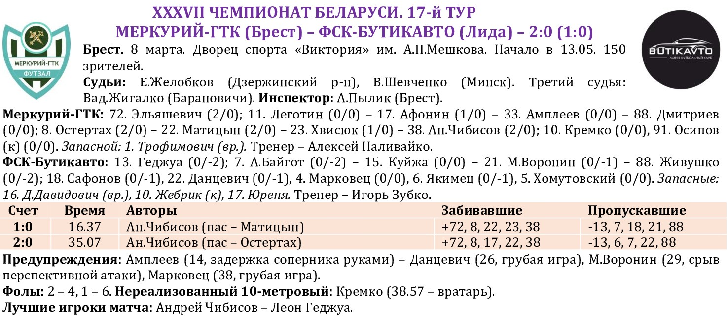 Андрей ЧИБИСОВ (Меркурий-ГТК – ФСК-Бутикавто, 1:0)