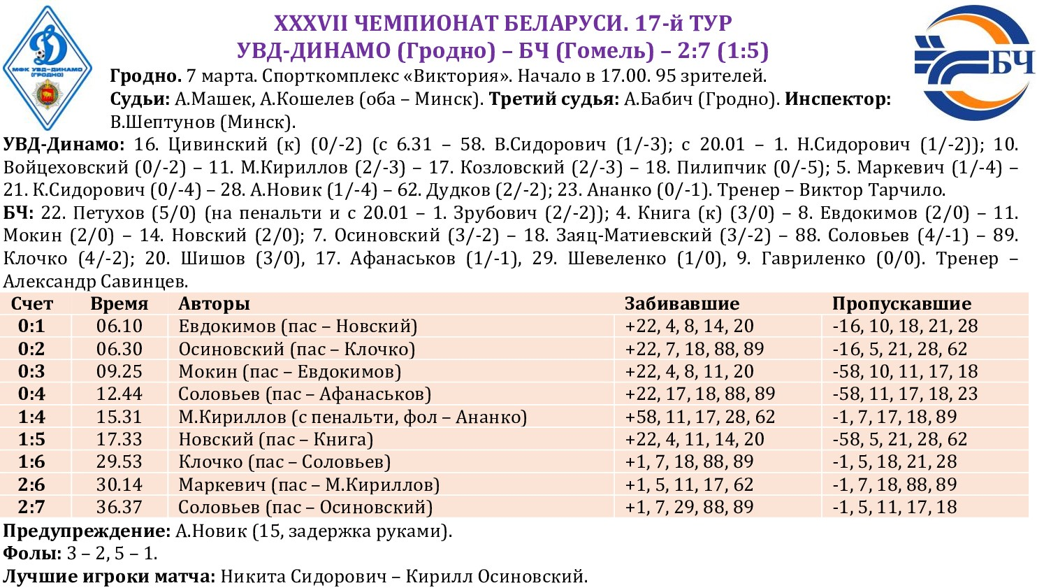 XXXVII ЧЕМПИОНАТ БЕЛАРУСИ. 17-й ТУР