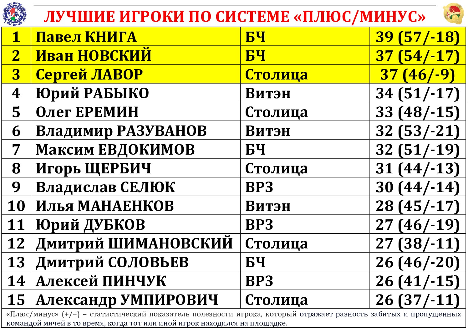 Виталий ХВЕСЬКО (Столица); Артем НОВИК (УВД-Динамо) – Александр НЕХАЙ (Минск) – Евгений ПЕРЕМИТИН (Витэн) – Юрий ДУБКОВ (ВРЗ)