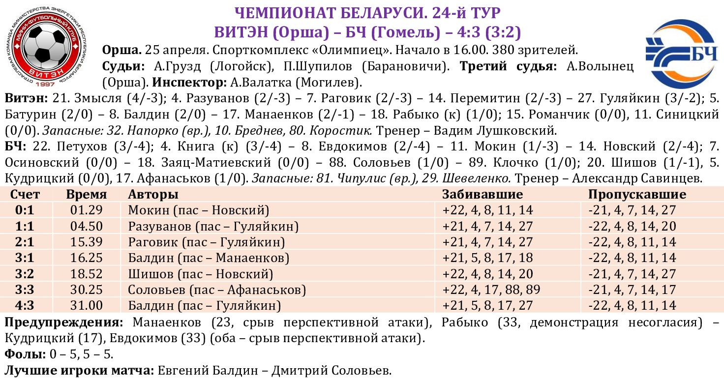 ЧЕМПИОНАТ БЕЛАРУСИ. 24-й ТУР