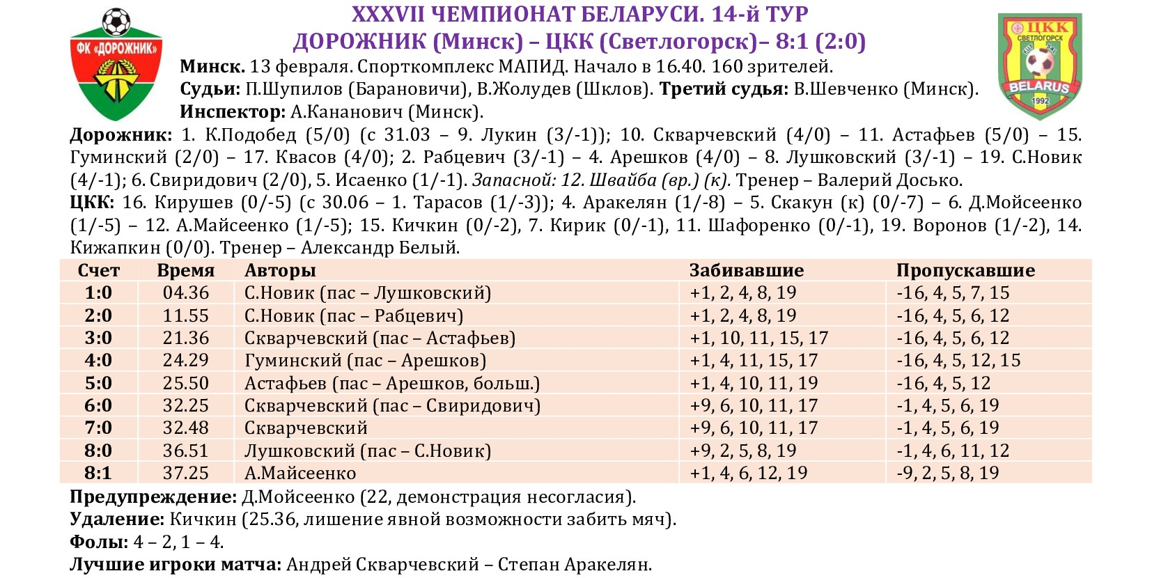 14-й тур XXXVII чемпионата Беларуси. Итоги