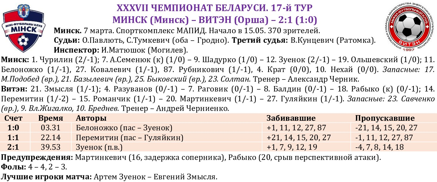 XXXVII ЧЕМПИОНАТ БЕЛАРУСИ. 17-й ТУР