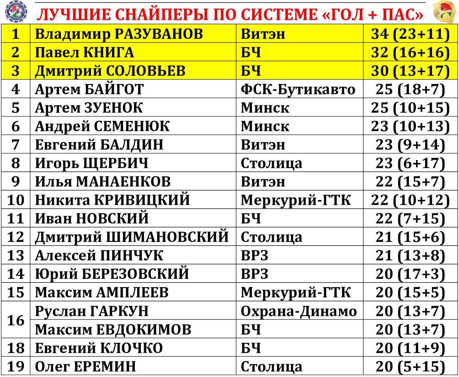 Леон ГЕДЖУА (ФСК-Бутикавто); Евгений БАЛДИН (Витэн) – Роман БЕЛОНОЖКО (Минск) – Дмитрий ЛЕГОТИН (Меркурий-ГТК) – Олег ЧИРИЧ (УВД-Динамо)