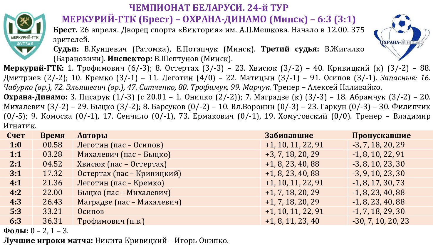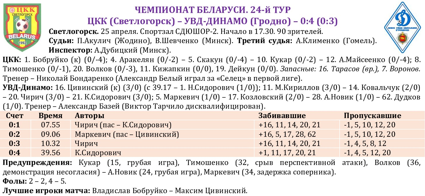 ДИНАМО-БНТУ (Минск) – ВРЗ (Гомель) – 0:5* (техническое поражение)